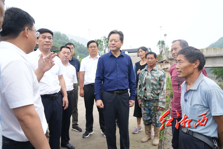 6月11日,湘西州委书记虢正贵到泸溪县、凤凰县调研部署防汛救灾和灾后重建等工作。本组图片由团结报全媒体记者 刘炜 摄
