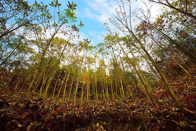 拄杖登山,时不时用竹杖拨开横斜眼前肆意生长的灌木和杂草,颇有几分红军长征路的感觉。