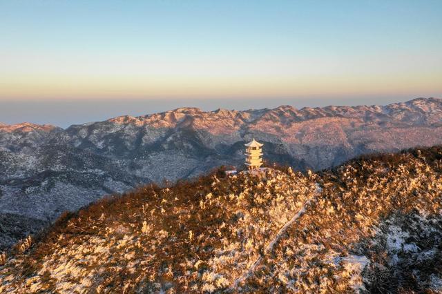 立于湘西之巅,群山静默,冬的壮阔与春的柔美交织出绝美画卷。