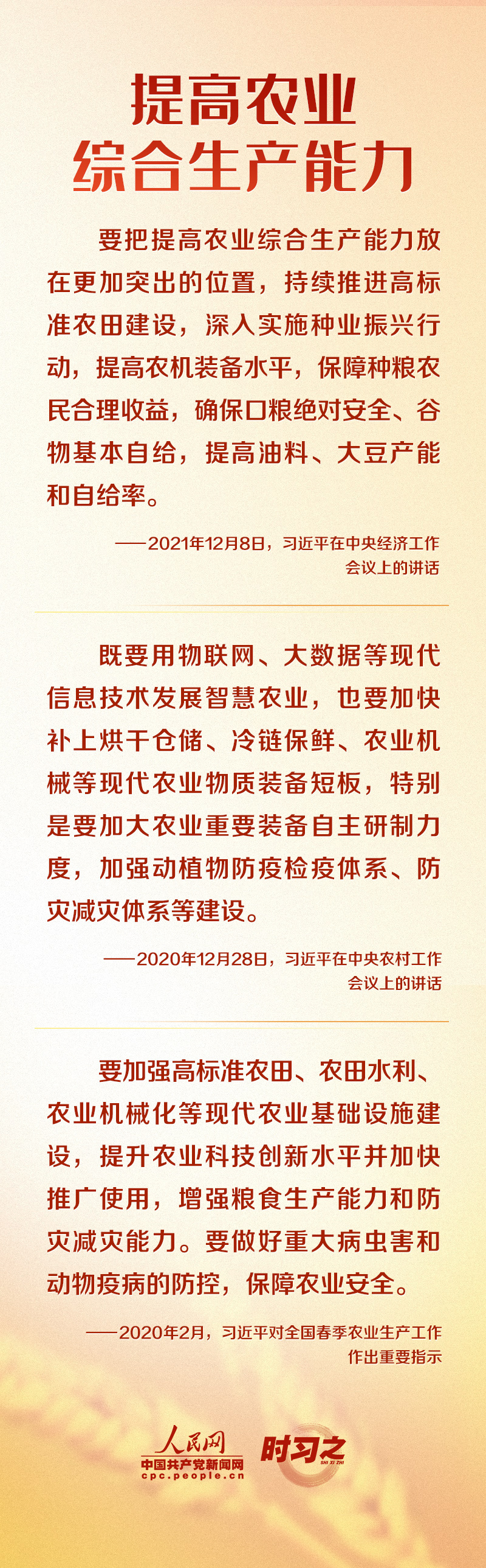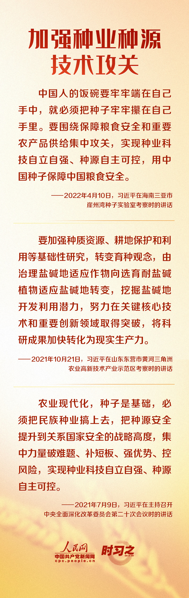 “国无农不稳,农以种为先。” 粮食安全在习近平总书记心中有着特殊的分量,他多次深入田间地头察墒情、看苗情、问收成,明确指出“解决吃饭问题,根本出路在科技。”党的十八大以来,我国在种业种源、农机农艺、农业技术集成推广等领域全面部署,不断推动“藏粮于地、藏粮于技”战略落实落地。