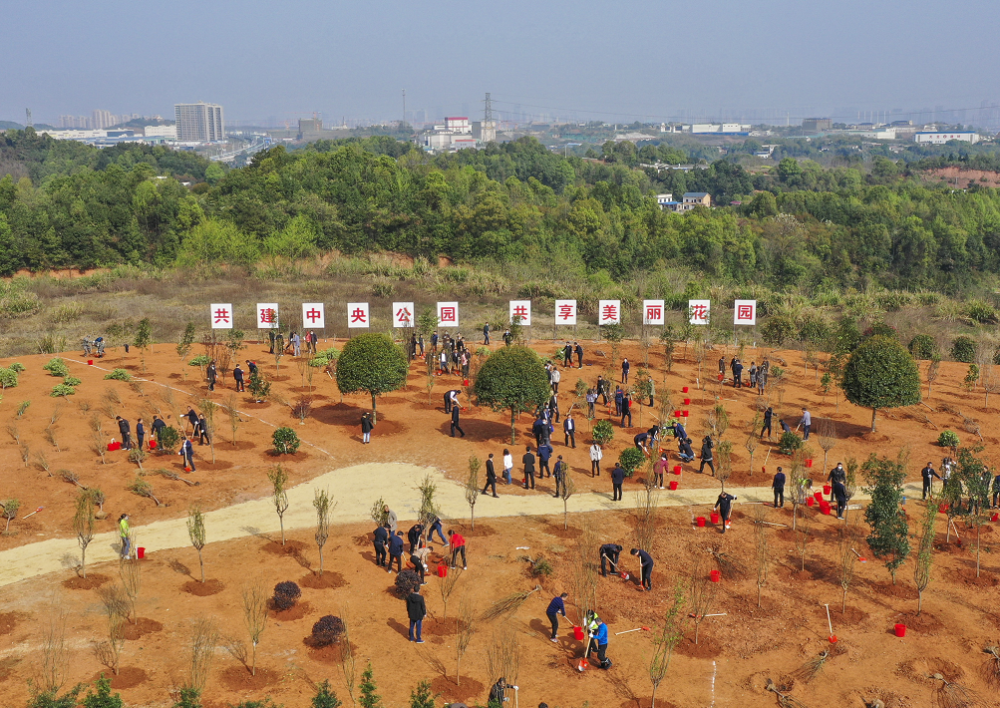 3月20日,湖南干部群众在长株潭城市群“绿心”地区植树。受访者供图