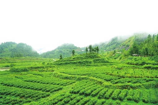 龙山县红岩镇古巄山下乌龙山茶庄园的茶园。 向莉君 摄