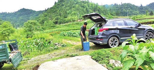 龙山县大安乡大红村土家族村民肖泽亮,开着去年刚买的小车,来到了烤烟田里杀虫。 向心波 摄