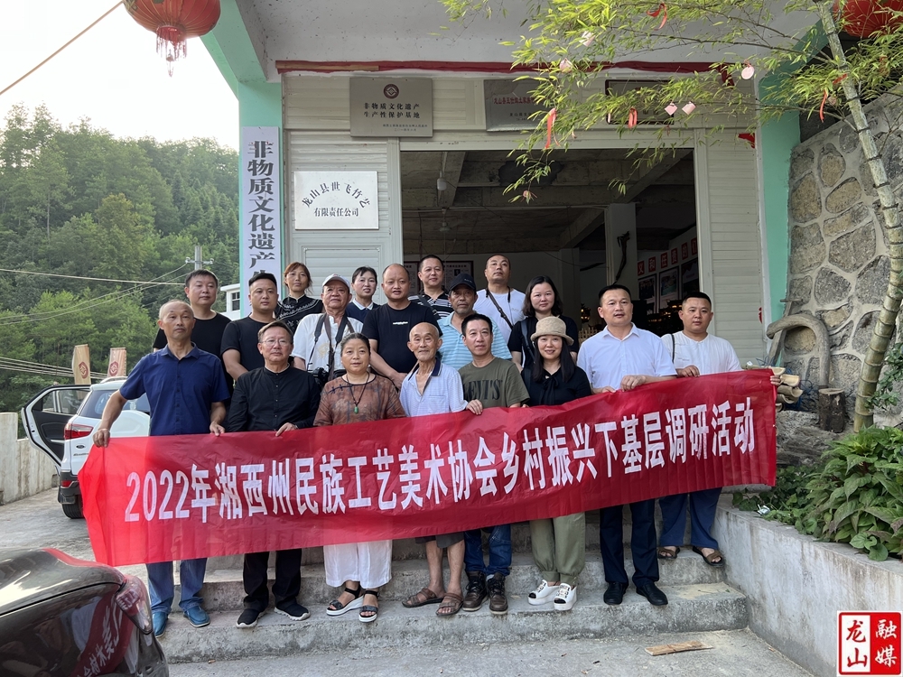 湖南省工艺美术协会“乡村振兴基层调研活动”湘西行,龙山县是首站。两天时间里,采取了会议、座谈、专访、实地踏勘等方式,重点了解龙山县基层工艺美术从业者的生存发展状况、工艺美术在乡村振兴中的作用和担当、民族地区工艺美术事业传承等,授予了龙山县叶氏民族工艺有限公司为“湘西州民族工艺美术协会副理事长单位”。