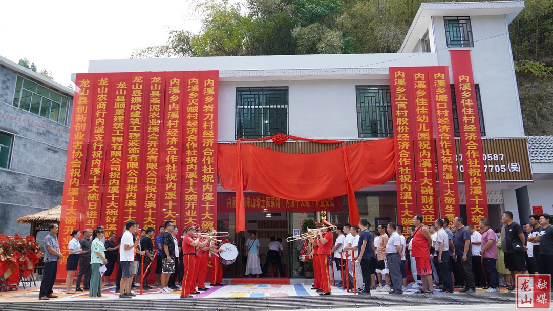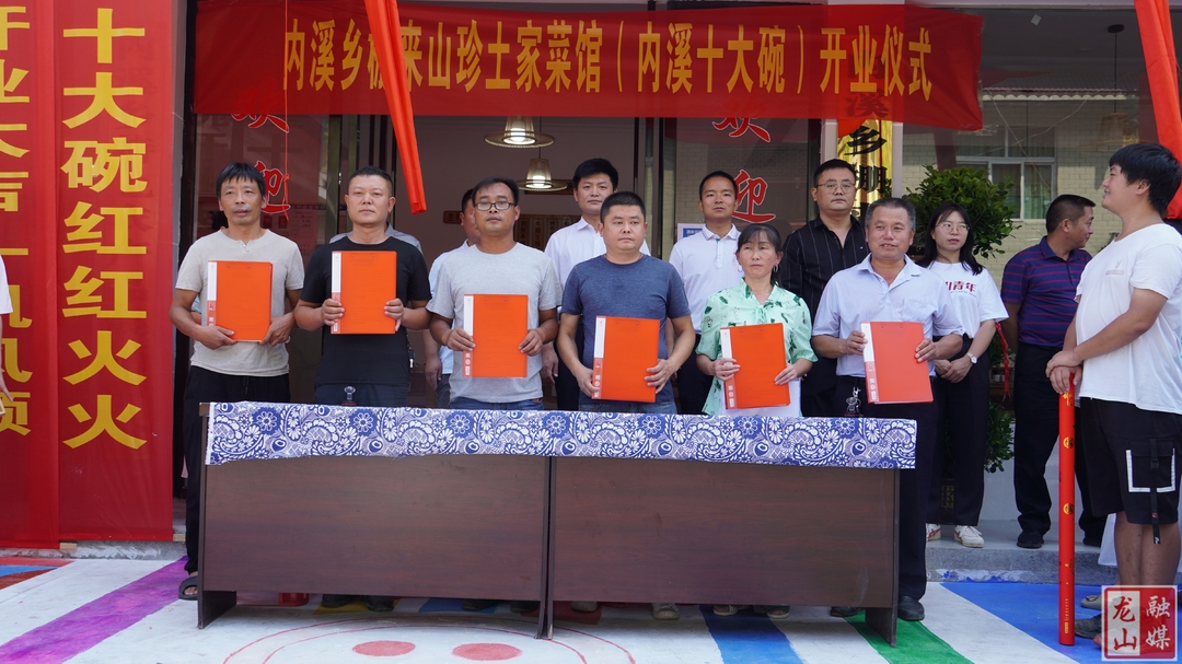 龙山县融媒体中心9月9日讯(记者 向波 通讯员 田森林)9月9日,龙山县首家村集体经济餐馆——棚来山珍土家菜馆(内溪十大碗)在内溪乡正式开业。县人大常委会副主任向大龙出席开业仪式并讲话。