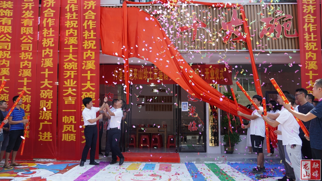 仪式上,向大龙为餐馆揭牌;内溪乡党委负责人介绍了餐馆有关情况;6个联合经营的村集体经济合作社现场签订了联营协议;邀请的直播团队以网红探店的方式,对开业仪式进行了全程直播。