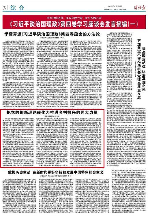 《习近平谈治国理政》第四卷内容丰富、思想深邃,生动记录了以习近平同志为核心的党中央团结带领全党全国各族人民全面建成小康社会,开启全面建设社会主义现代化国家新征程的伟大实践,是系统反映习近平新时代中国特色社会主义思想的权威著作。龙山县作为全省实施乡村振兴战略重点帮扶县、农业大县,要引导广大党员和干部群众学好用好这一权威著作,把学习贯彻习近平总书记关于“三农”工作和乡村振兴工作的重要论述作为重大政治任务抓紧抓实,坚定不移用党的创新理论武装头脑、指导实践、推动工作。