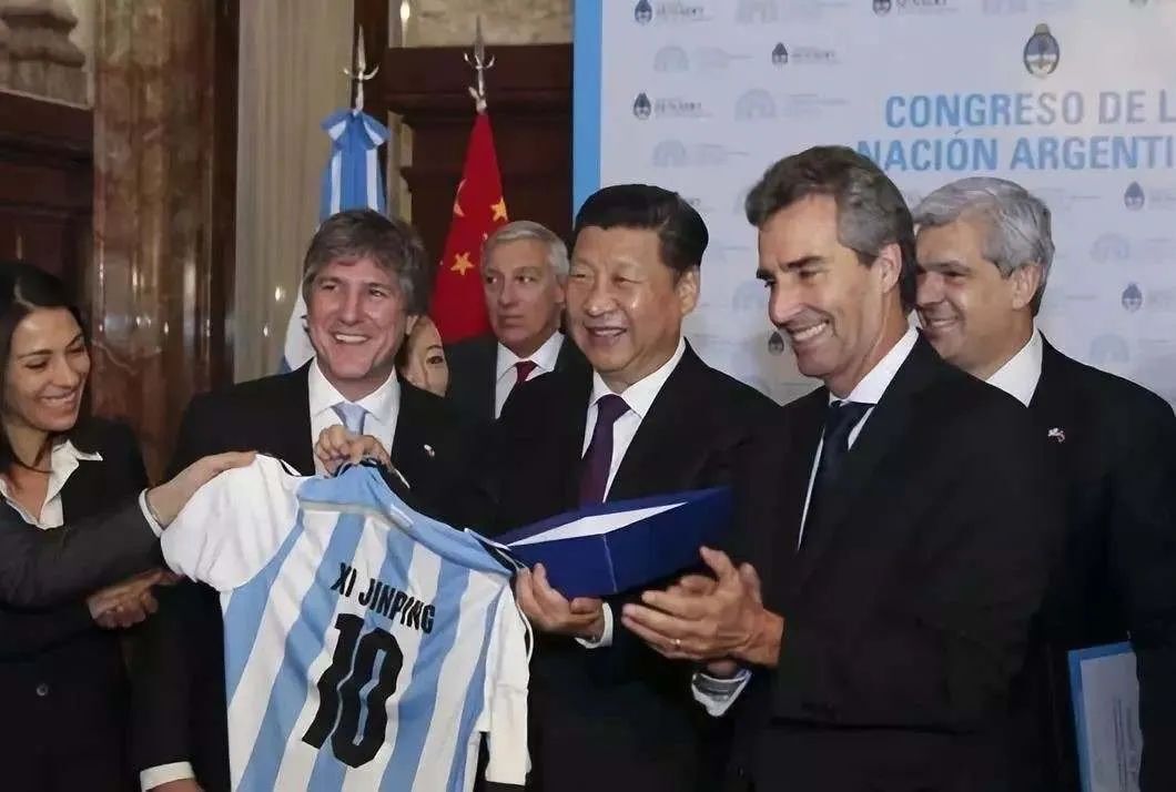 2014年7月,习近平主席获赠阿根廷国家足球队10号球衣。新华社记者 丁林 摄