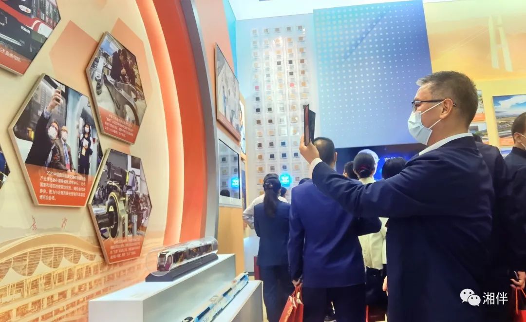 看到2021中国国际轨道交通和装备制造产业博览会的图片,曹慧泉代表举起手机拍照留念。湖南日报全媒体记者 邓晶琎 摄看到2021中国国际轨道交通和装备制造产业博览会的图片,他按下拍照键。展厅里摆放的双层动车组模型,值得拍一张。由中车株机完全自主研发设计,已出口德国、巴西等20多个国家和地区。奔驰中的“复兴号”,必须拍。这是由中车株机提供动力和牵引等关键技术的超高速列车,跑出了605公里的时速。