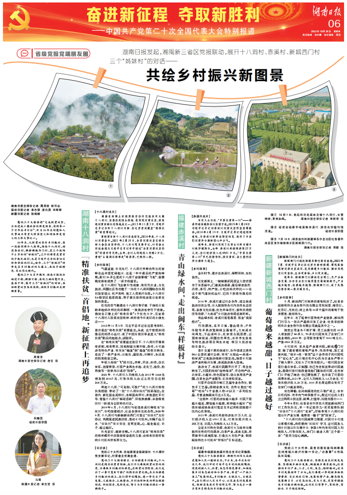 党的二十大召开期间,湖南日报联合福建日报、新疆日报,连线三地的党代表、基层干部,展开三个“姊妹村”的对话,共话脱贫攻坚生动实践,共绘乡村振兴美好新图景。