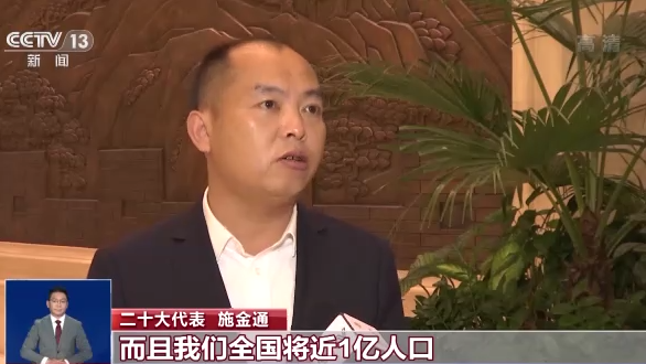 二十大代表 施金通:习近平总书记在十八洞村提出了精准扶贫,十八洞村从此发生了翻天覆地的变化。不仅仅十八洞村,而且我们全国将近1亿人口,也因此拔掉了千年的穷根,一步千年,脱贫摘帽,奔入了小康社会。