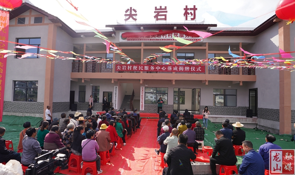 调研结束后,尖岩村举行了便民服务中心揭牌仪式。王建华、时荣芬共同为尖岩村便民服务中心揭牌。