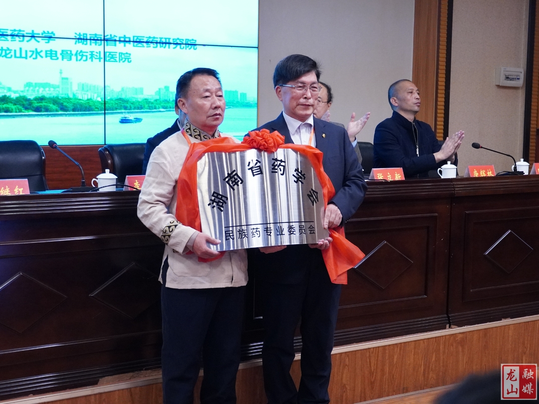 湖南省药学会理事长李焕德为龙山县水电骨伤科医院授牌