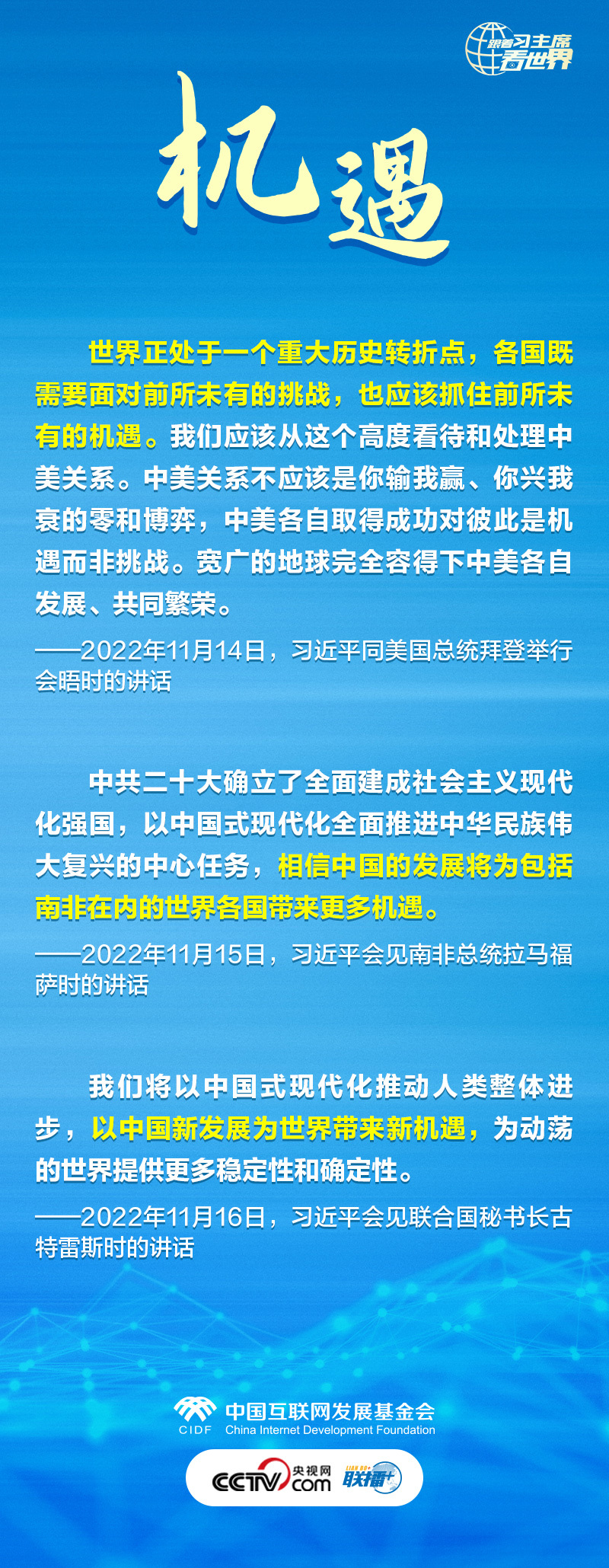 三天时间,习近平主席在印尼巴厘岛密集会见了十余位国家和国际组织领导人。在这些外事活动中,习主席的发言频频提及“机遇”“命运共同体”“真正的多边主义”“全球产业链供应链”等关键词。央视网《联播+》特作梳理,与您一起学习。