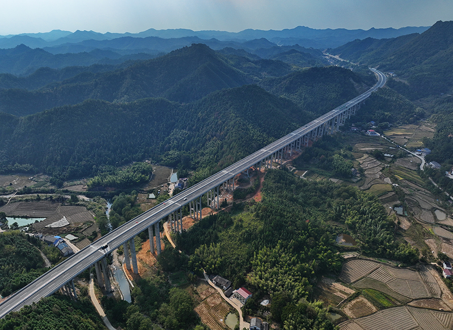 ▲ 10月17日,平江县加义镇,平益高速荷包洲特大桥全面完工。(图片来源:湖南省人民政府官网)