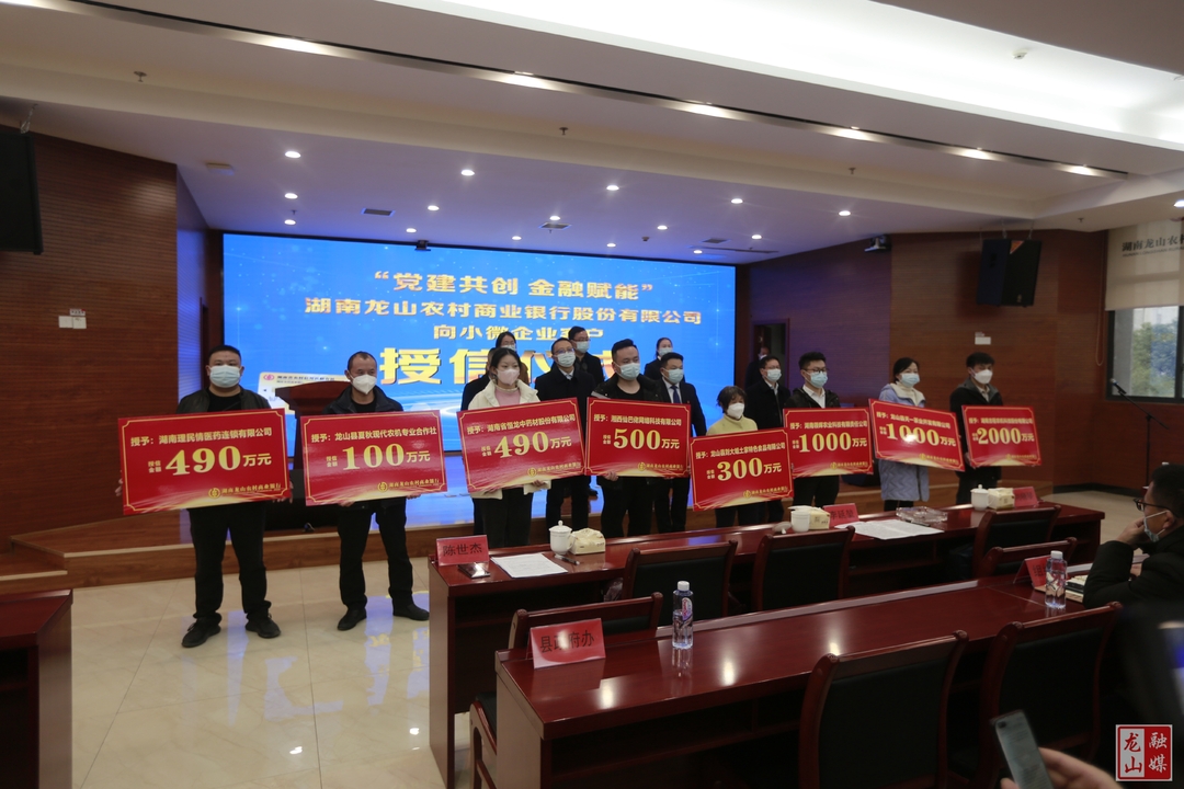 随后为龙山县绿鲜园百合开发有限公司、龙山森焱中药材有限公司、湖南省山海农牧科技有限公司、龙山县明诚百合农民专业合作社、龙山县一家亲百合专业合作社、雷孝军、龙山县龙洞百合农民专业合作社、彭望云、湖南理民情医药连锁有限公司、龙山县夏秋现代农机专业合作社、湖南省恒龙中药材股份有限公司、湘西仙巴佬网络科技有限公司、龙山县刘大姐土家特色食品有限公司、湖南领晖农业科技有限责任公司、龙山县天一茶业开发有限公司、湖南吉程农机科技股份有限公司现场授信,授信金额合计6790万元。