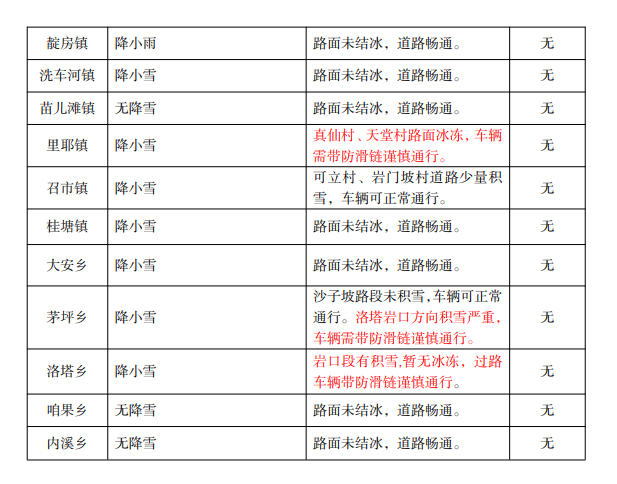 请各乡镇、街道和县直有关单位密切关注气象部门和县低温雨雪冰冻灾害应急指挥部办公室发布的气象信息、工作信息(详见县防汛抗旱工作指挥部微信群),落实应急响应责任和措施, 切实加强道路巡查管控,确保道路安全万无一失。
