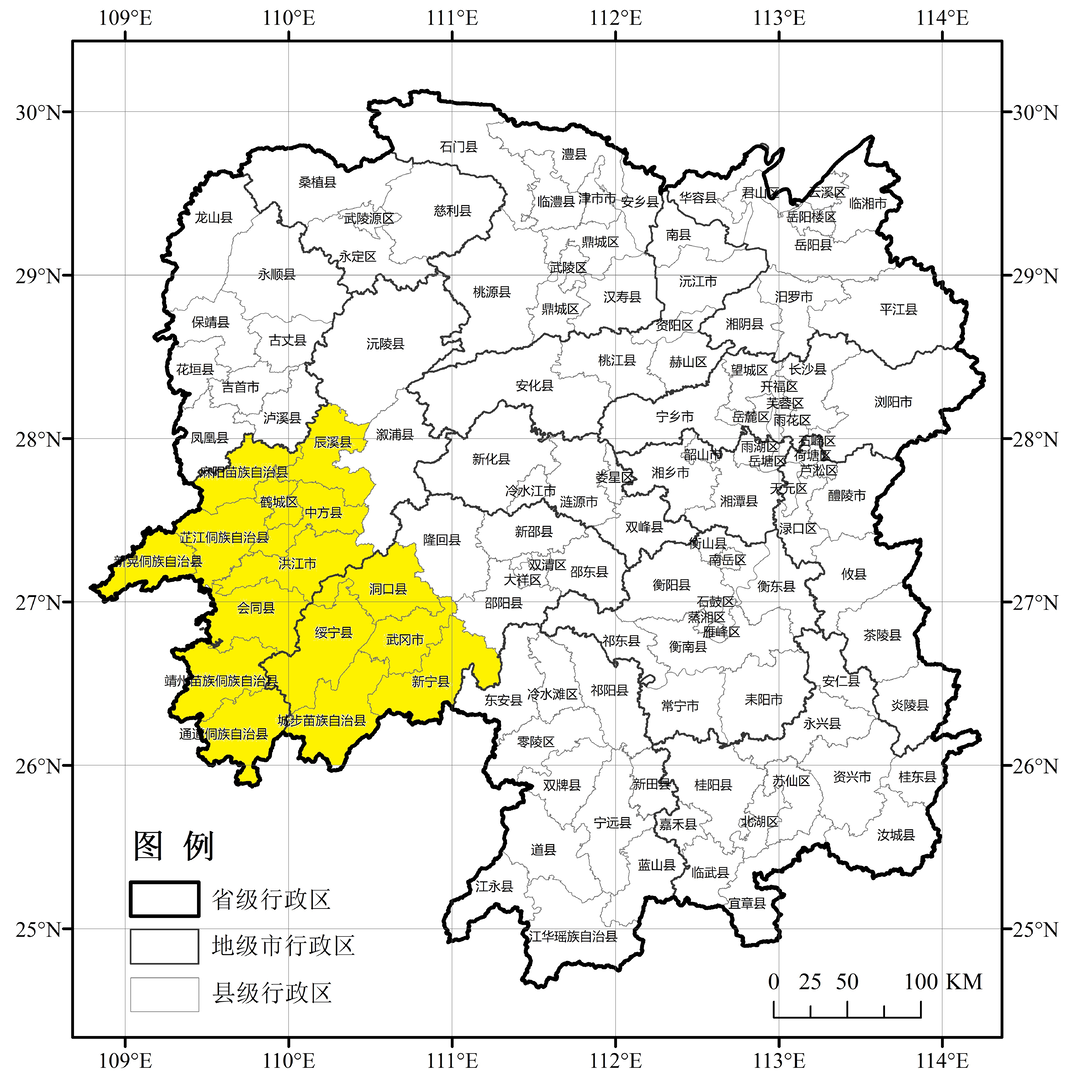 湘西南地区:邵阳(洞口县、绥宁县、新宁县、城步苗族自治县、武冈市)、怀化(鹤城区、中方县、辰溪县、会同县、麻阳苗族自治县、新晃侗族自治县、芷江侗族自治县、靖州苗族侗族自治县、通道侗族自治县、洪江市)