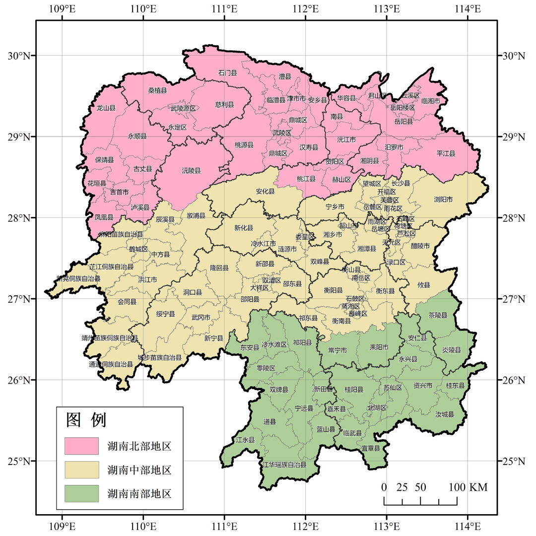 湖南省气象地理区划图(图一:湘北、湘中、湘南;图二:湘西;图三:湘西北;图四:湘西南)