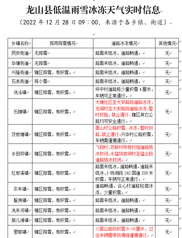 2022-12-28 10:59:00          来源:龙山县低温雨雪冰冻灾害应急指挥部办公室 | 编辑:向波 |          浏览量:7929