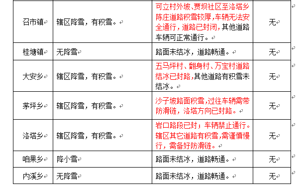 请各乡镇、街道和县直有关单位密切关注气象部门和县低温雨雪冰冻灾害应急指挥部办公室发布的气象信息、工作信息(详见县防汛抗旱工作指挥部微信群),落实应急响应责任和措施,切实加强道路巡查管控,确保道路安全万无一失。