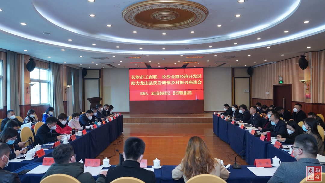 随后,在县会议中心召开的长沙市工商联、长沙金霞经济开发区助力龙山县茨岩塘镇乡村振兴座谈会上,考察团一行观看了龙山宣传片;黎新松致辞;赵雪峰汇报了长沙市对口帮扶龙山县情况;尚晓琴作长沙对口龙山项目推介,并举行了资助和捐赠仪式。