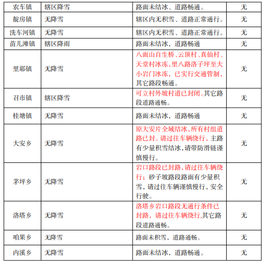 请各乡镇、街道和县直有关单位密切关注气象部门和县低温雨雪冰冻灾害应急指挥部办公室发布的气象信息、工作信息(详见县防汛抗旱工作指挥部微信群),落实应急响应责任和措施,切实加强道路巡查管控,确保安全稳定。