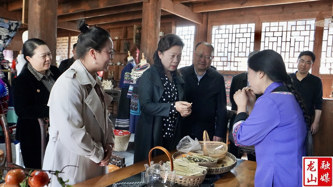 在苗儿滩镇捞车村古寨、里耶秦简博物馆,肖百灵一行与专家学者、非遗传承人、研学师生进行交流,详细了解项目运营、文物保护、民族文化资源开发利用传承等方面情况。她指出,要用好用活政协平台,立足湘西州资源优势,突出民族文化特色,打造优质项目,加大宣传力度,吸引游客走进来、留下来,以文旅融合发展带动地方经济高质量发展。