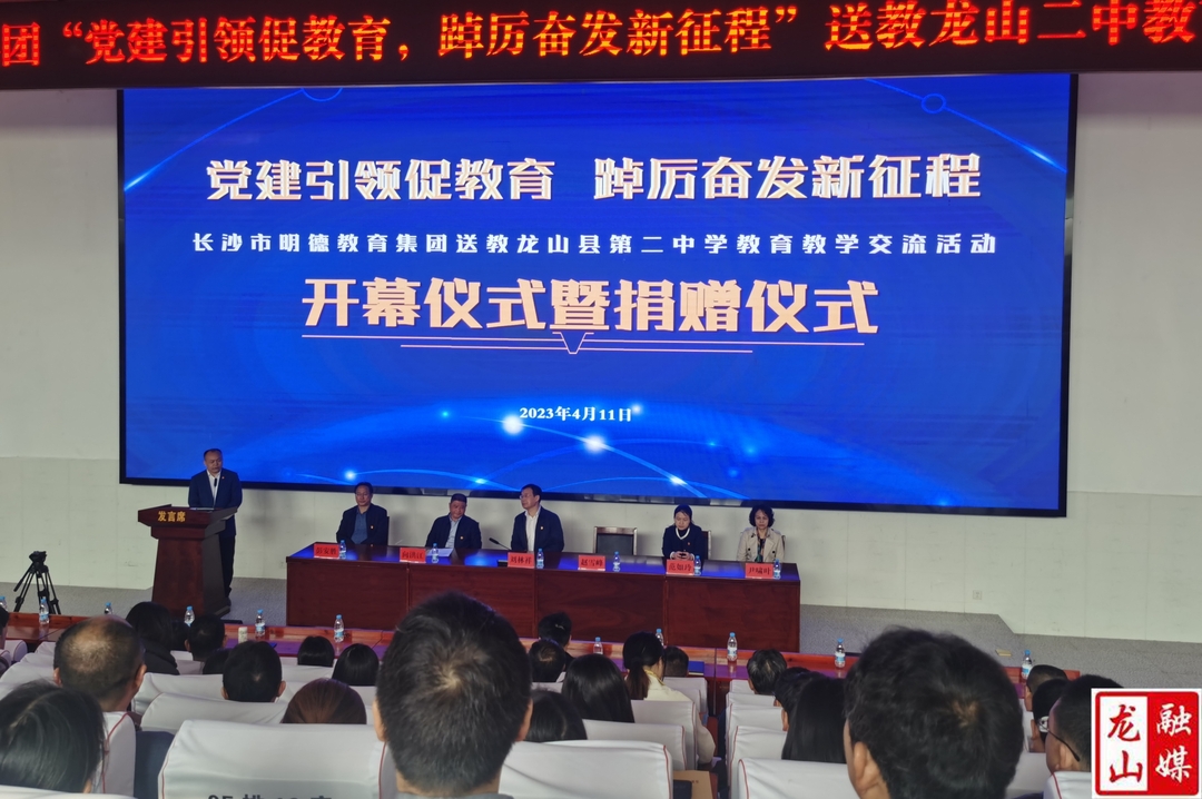 龙山县融媒体中心4月12日讯(通讯员 尤彦平 向烨)4月11日,长沙市明德教育集团“党建引领促教育,踔厉奋发新征程”送教龙山二中教育教学交流活动与捐赠仪式在龙山县第二中学举行。县委常委、副县长、长沙市对口帮扶龙山县工作组组长赵雪峰参加活动。