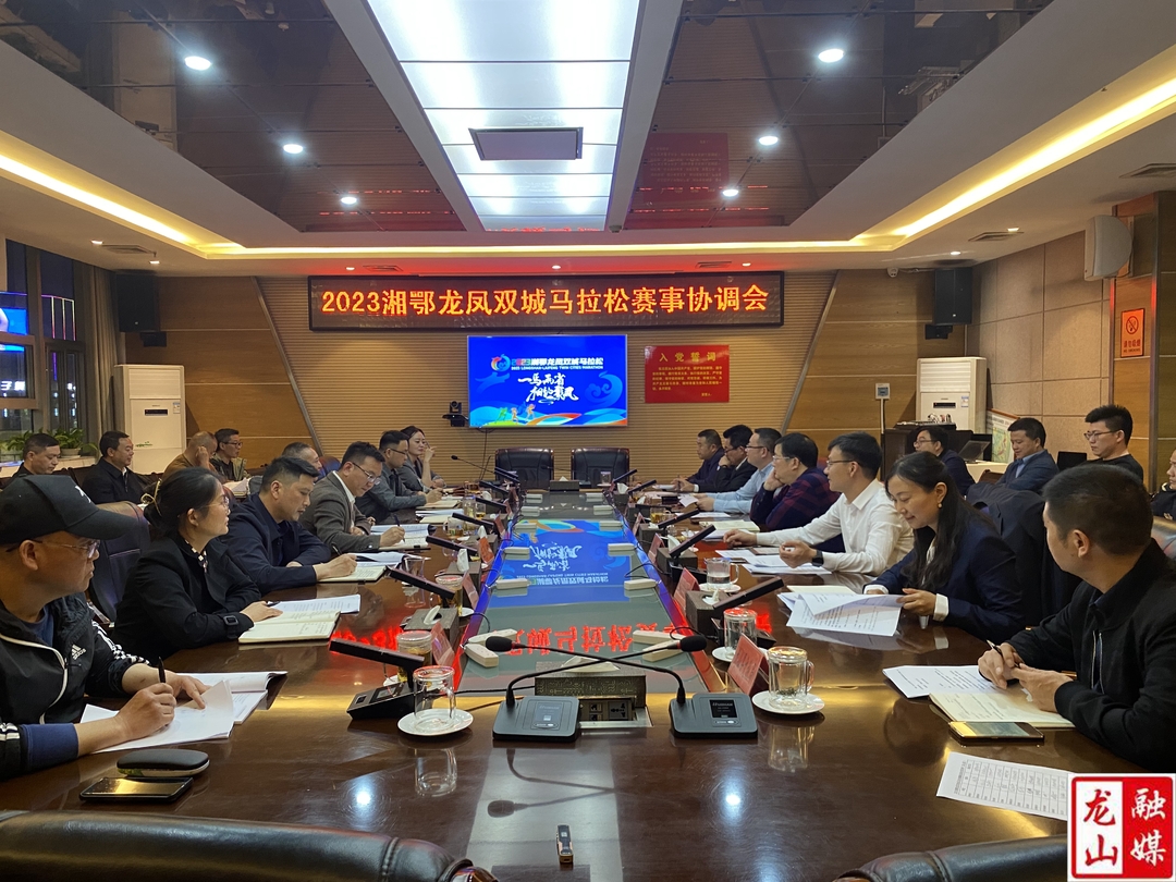 龙山县融媒体中心4月14日讯(记者 彭思倩)4月12日,湘鄂龙凤双城马拉松赛事协调会在龙山县召开,进一步统一思想,明确职责,扎实细致做好大赛各项工作,确保赛事顺利、安全、圆满举办。龙山县委副书记黎新松,来凤县委常委、常务副县长刘支皇,来凤县委常委、县委统战部部长黄祥平,来凤县人民政府副县长汪玉明,龙山县人民政府副县长刘引出席会议。
