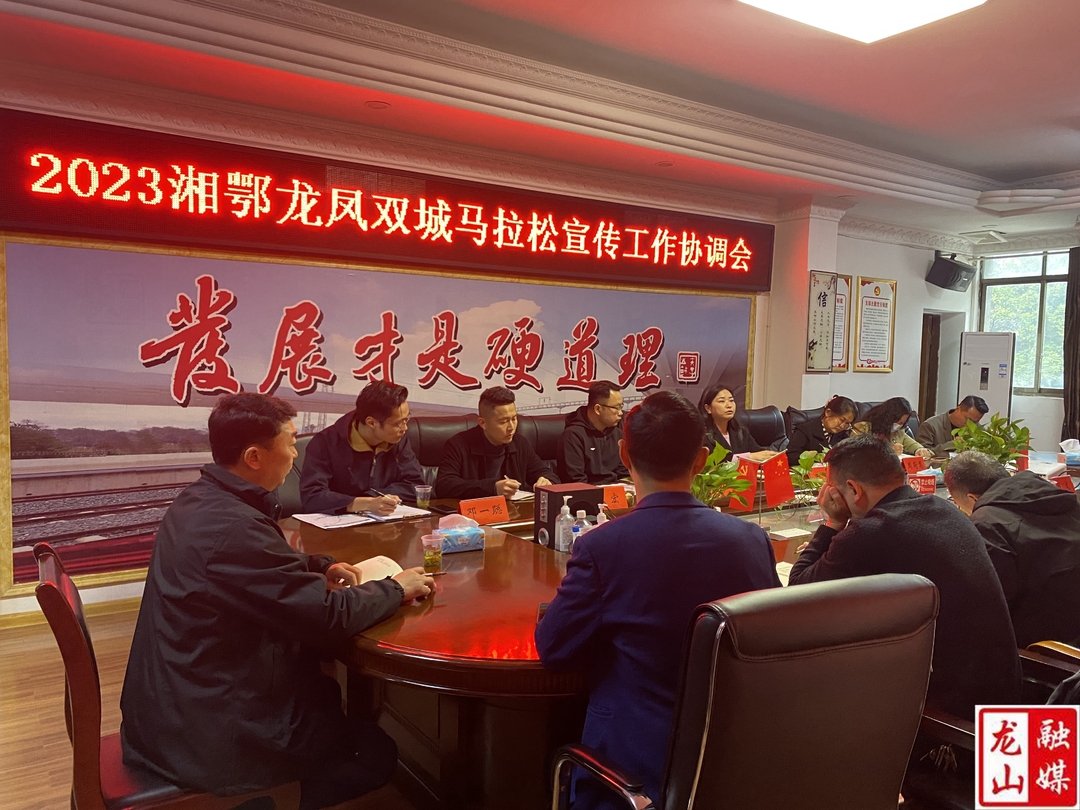 龙山县融媒体中心4月24日讯(记者 彭思倩)4月24日上午,2023湘鄂龙凤双城马拉松宣传工作协调会召开,进一步协调做好龙凤双城马拉松赛事的各项宣传报道工作。县委常委、县委宣传部部长梁兴华,来凤县委常委、县委宣传部部长田慧出席会议。