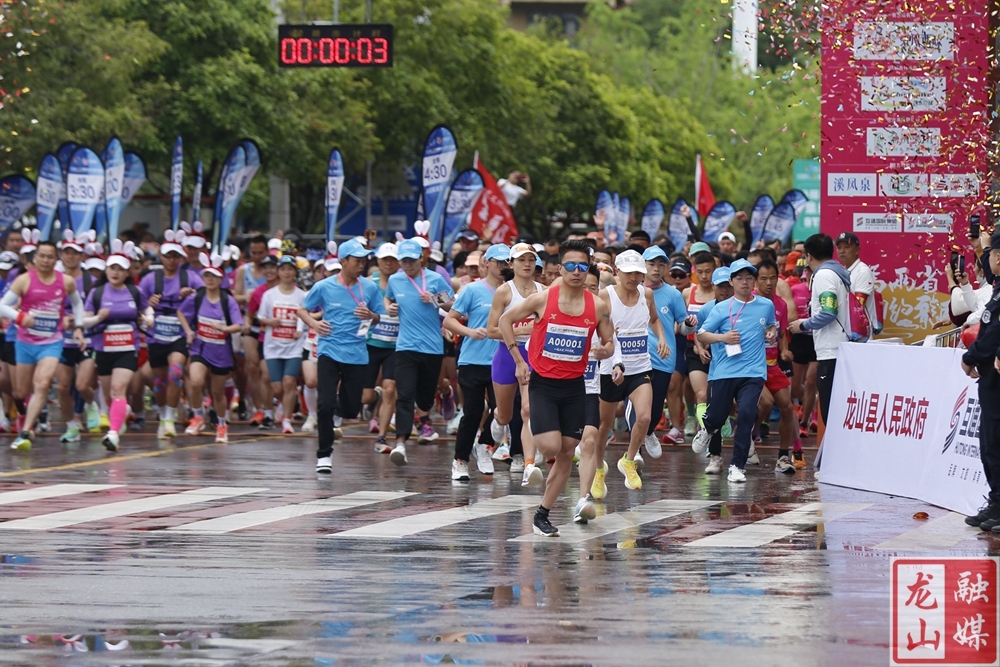 发令枪响,2万余名跑者如离弦之箭般冲出起跑线,从来凤县城中心喳西泰广场出发,沿武汉大道,经岳麓大道,奔赴龙山县城。