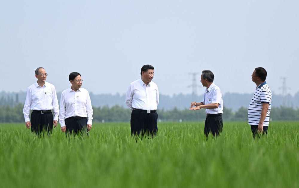 2022年6月8日,习近平在四川眉山市东坡区太和镇永丰村高标准水稻种植基地考察,了解水稻试验育种和种植推广情况。