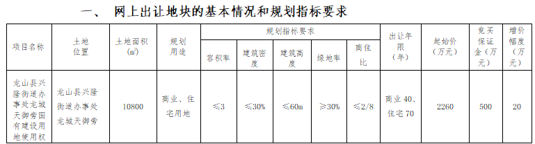 一、 网上出让地块的基本情况和规划指标要求