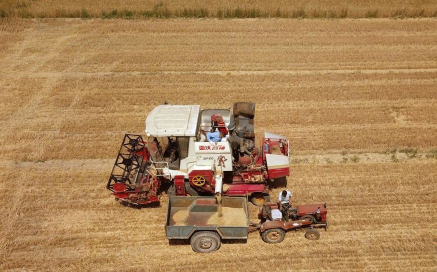 △2023年6月14日,在山东省临邑县林子镇,联合收割机在收获小麦。