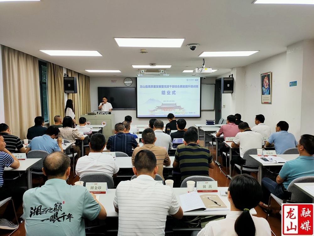 龙山县融媒体中心7月2日讯(记者 莫代银 通讯员 陈冬立 向彪)6月30日下午,龙山县高质量发展暨党政干部综合素能提升培训班结业仪式在浙江大学西溪校区举行,通过6天的理论知识学习和现场教学,培训圆满结束。县委常委、县委组织部部长龙志勇出席结业仪式并讲话。