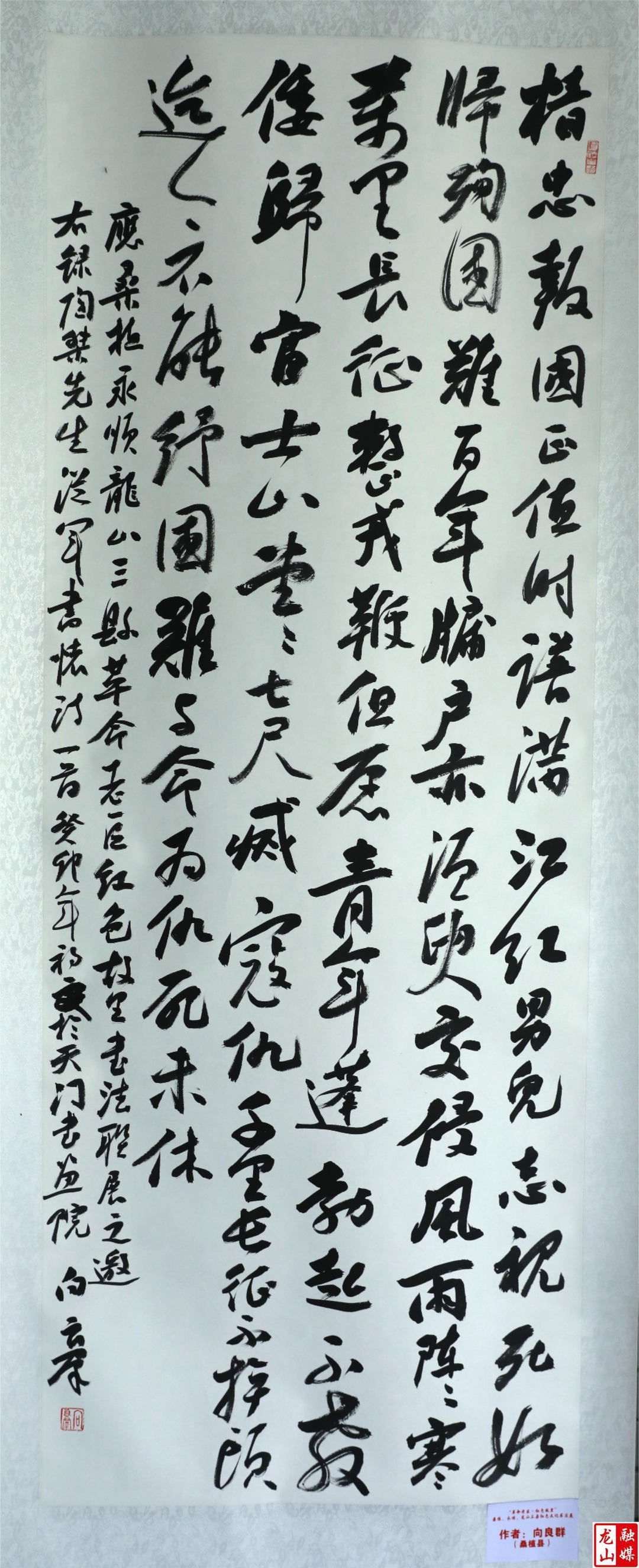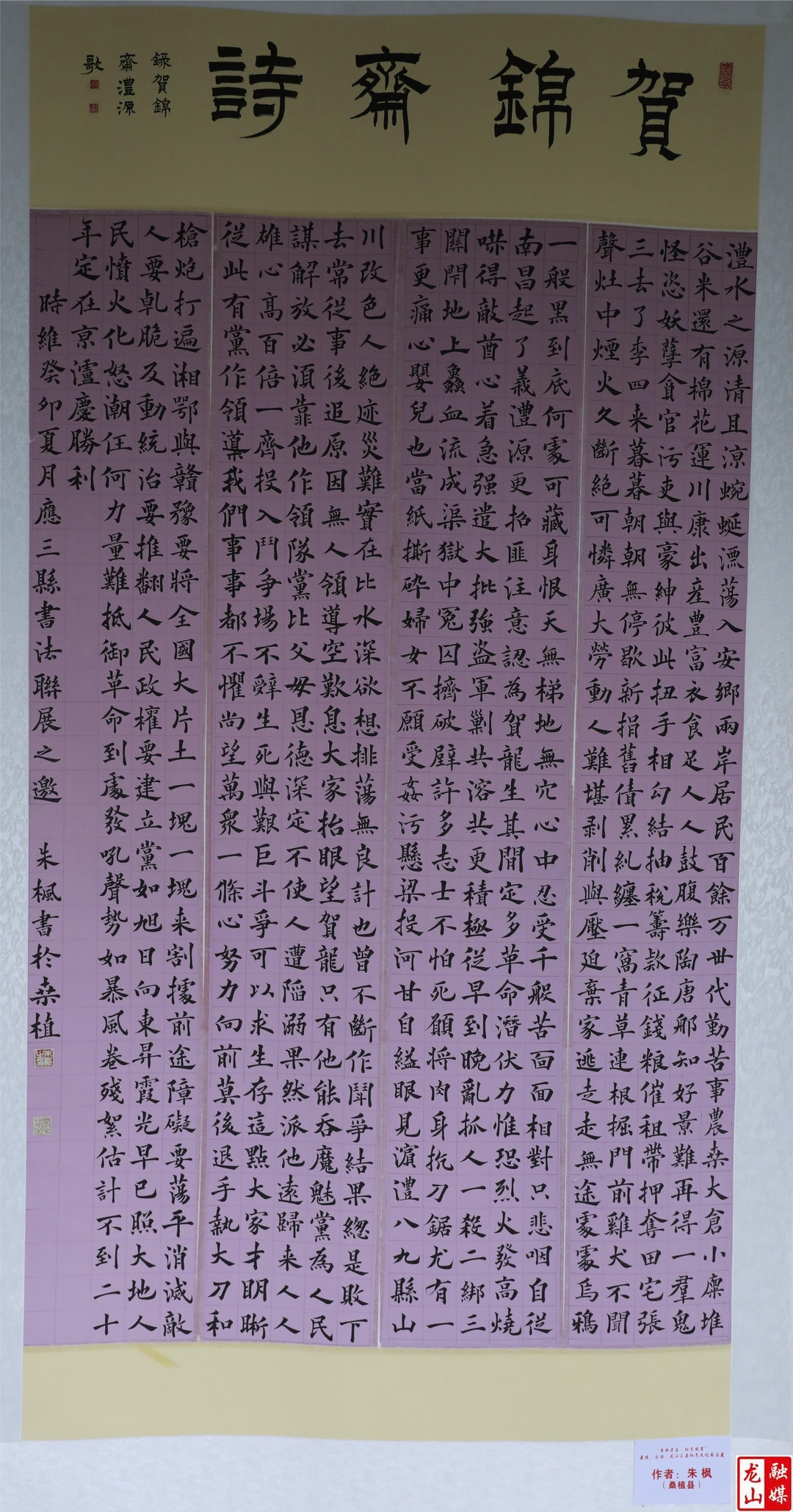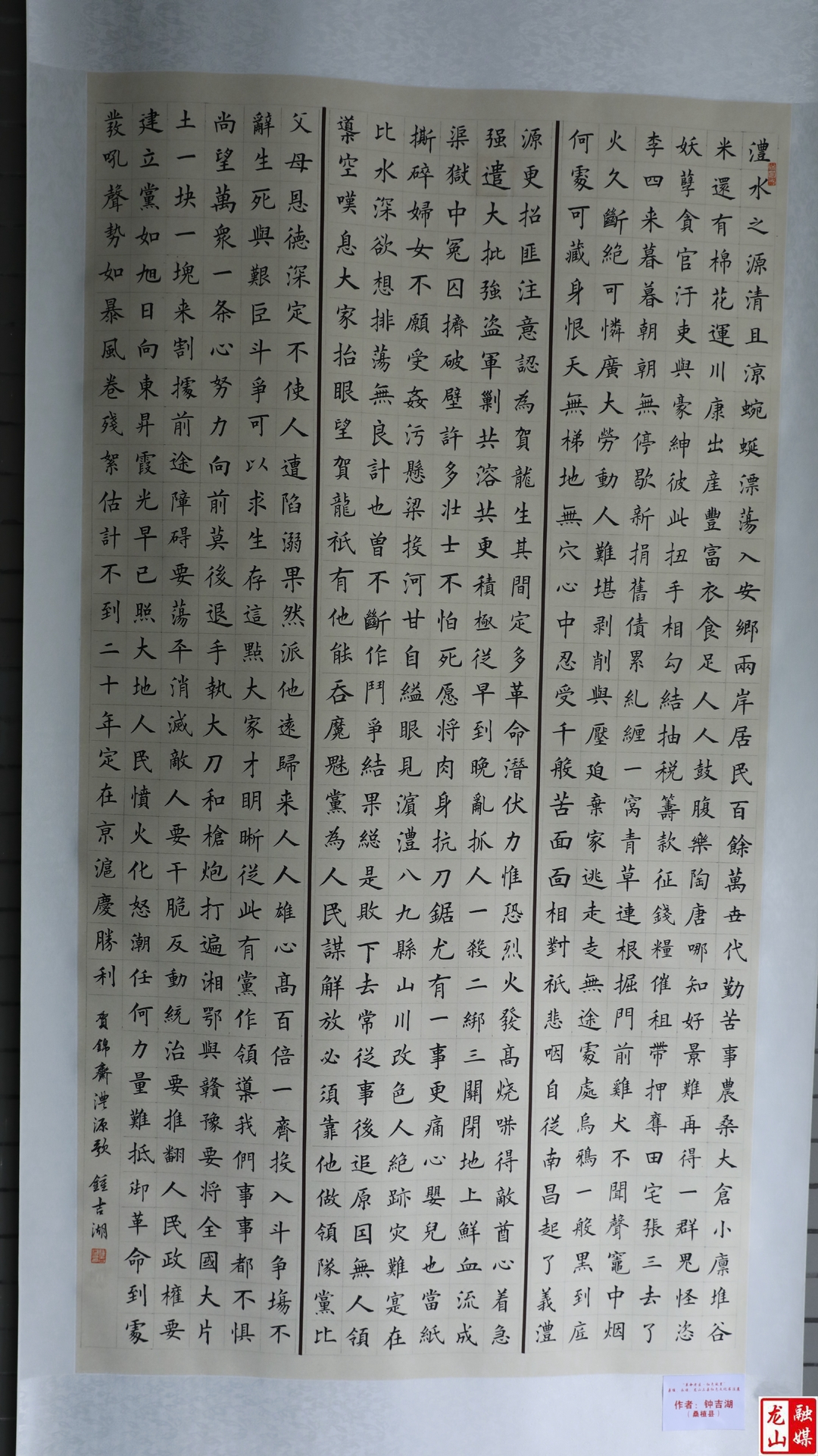 龙山县融媒体中心7月4日讯(通讯员 陈新祥 )为弘扬伟大的长征精神,传承红色文化,展现革命老区新时代新面貌,促进文旅融合,丰富老区干部职工和人民群众的精神文化生活。7月1日,龙山县、桑植县和永顺县联合开展“革命老区· 红色故里”红色书法作品联展,共展出来红色文化书法作品129件,展览时间自7月1日起为期5天,并将于8月1日和10月1日先后在永顺和龙山举办相关展览活动。