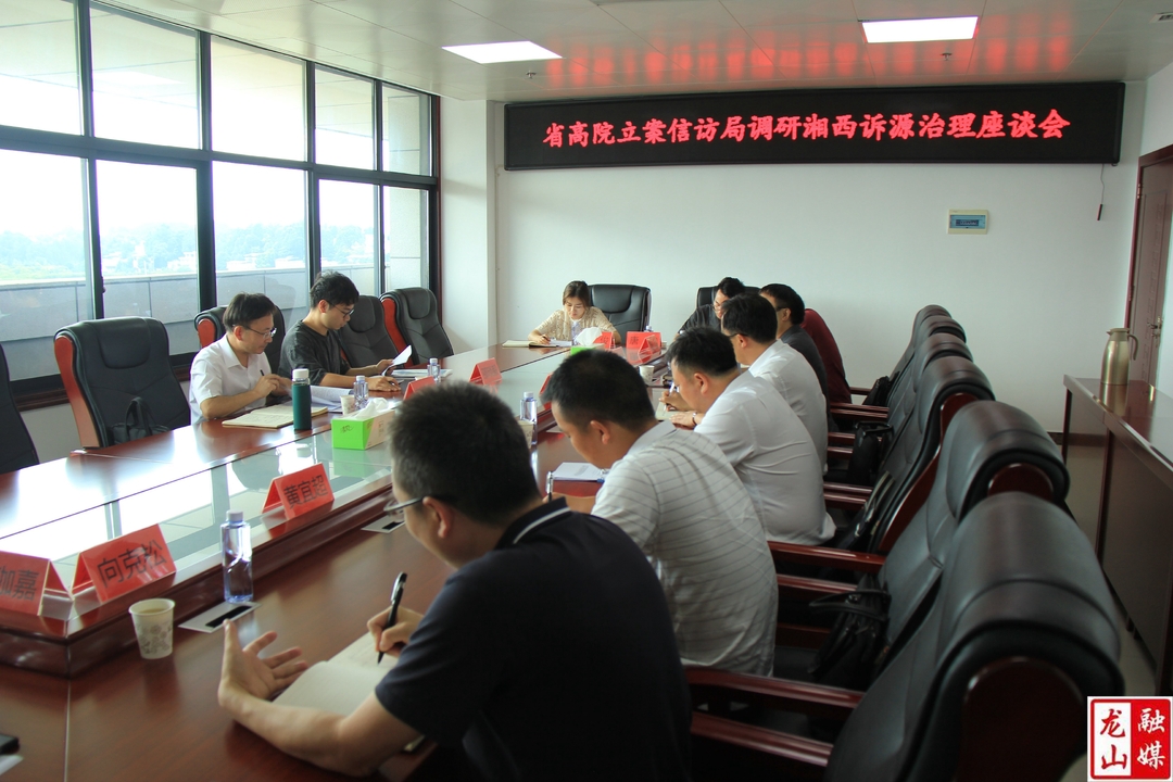 龙山县融媒体中心7月13日讯(通讯员 曹天宇 向明)7月11日,省高级人民法院立案信访局副局长、二级高级法官刘海洲一行到龙山县人民法院调研督导诉源治理工作。县人民法院党组书记、院长杜丛志,湘西州中级人民法院立案信访局负责人,县社会矛盾纠纷调处化解领导小组成员单位负责人,县人民法院相关工作人员陪同调研。