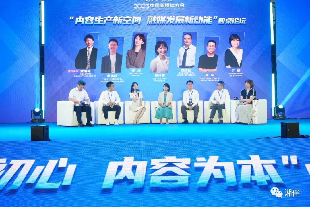 7月12日,中国新媒体大会内容创新论坛在长沙召开。在“内容生产新空间 融媒发展新动能”圆桌论坛,新华社“张扬工作室”负责人张扬分享创作心得。湖南日报全媒体记者 辜鹏博 摄在内容创新论坛上,光明日报社副总编辑陆先高认为,内容生产方式需要创新,但这种创新是有边界的、有一定规则的,需要让内容把关、编辑选优、互动管控、舆情应对等全过程可管可控。经济日报社副总编辑季正聚说,不管媒体融合以何种方式推进,不管互联网的风口如何变幻,优质内容都是我们的核心优势,也是我们的安身立命之本。湖南日报社党组书记、社长姜协军表示,“内容为王”的理念没有过时,依然是主流媒体的“看家本领”和以“不变”应“万变”的重要法宝。在省级融媒创新论坛上,北京市委宣传部副部长、北京广播电视台党组书记余俊生认为,要以优质内容构筑流量高地,以先进技术夯实转型底座,以持续创新打开未来空间。上海报业集团党委书记、社长李芸说,要坚定不移推动主力军挺进主战场,从单一的“纸媒人”转变为“全媒人”。湖南日报社党组副书记、总编辑、总经理邹继红说,要以“深融”催生内容生产新生态,聚合加速发展新动能,壮大主流舆论新格局。思想的火花在交流碰撞中迸发,新观念新视野不断激荡,正能量与大流量同频共振。媒体融合发展走过十年,以AIGC(人工智能生成内容)为代表的人工智能技术加速迭代演进,推动媒体融合进入媒体智能化快速发展新时代。“借助AI-auto(人工智能助手),一个人就能打造一支融媒体‘军队’。”2023中国新媒体技术展上,众多“黑科技”集中亮相,令人大呼过瘾。