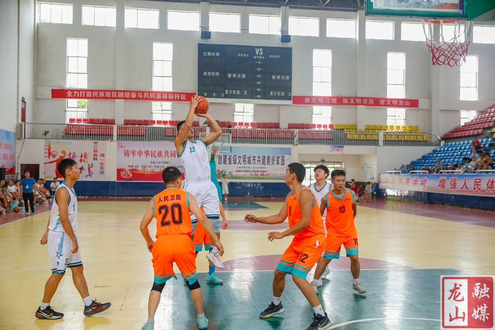 龙山县融媒体中心7月18日讯(记者 黄超)7月18日,2023年龙山·来凤“中华民族一家亲·龙凤文明杯”干部职工篮球赛龙山赛区比赛火热进行中。