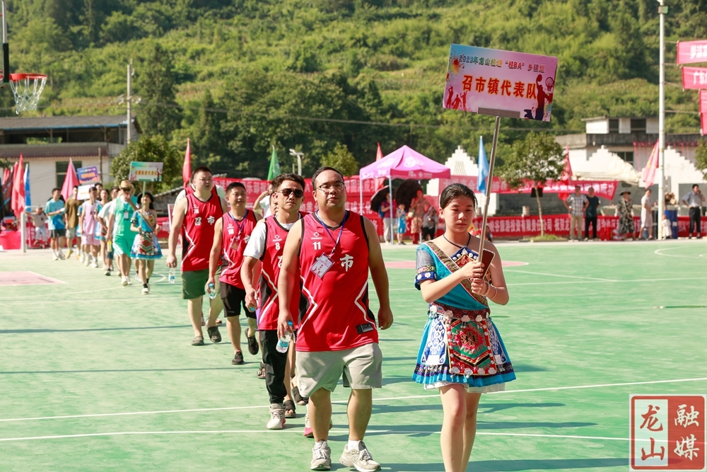 开幕式现场,刘引为活动致辞;裁判员、运动员先后进行宣誓;黎新松宣布湖南龙山·桂塘镇2023 年湘鄂渝边区和美乡村夏季篮球文化节 “桂BA”开幕。