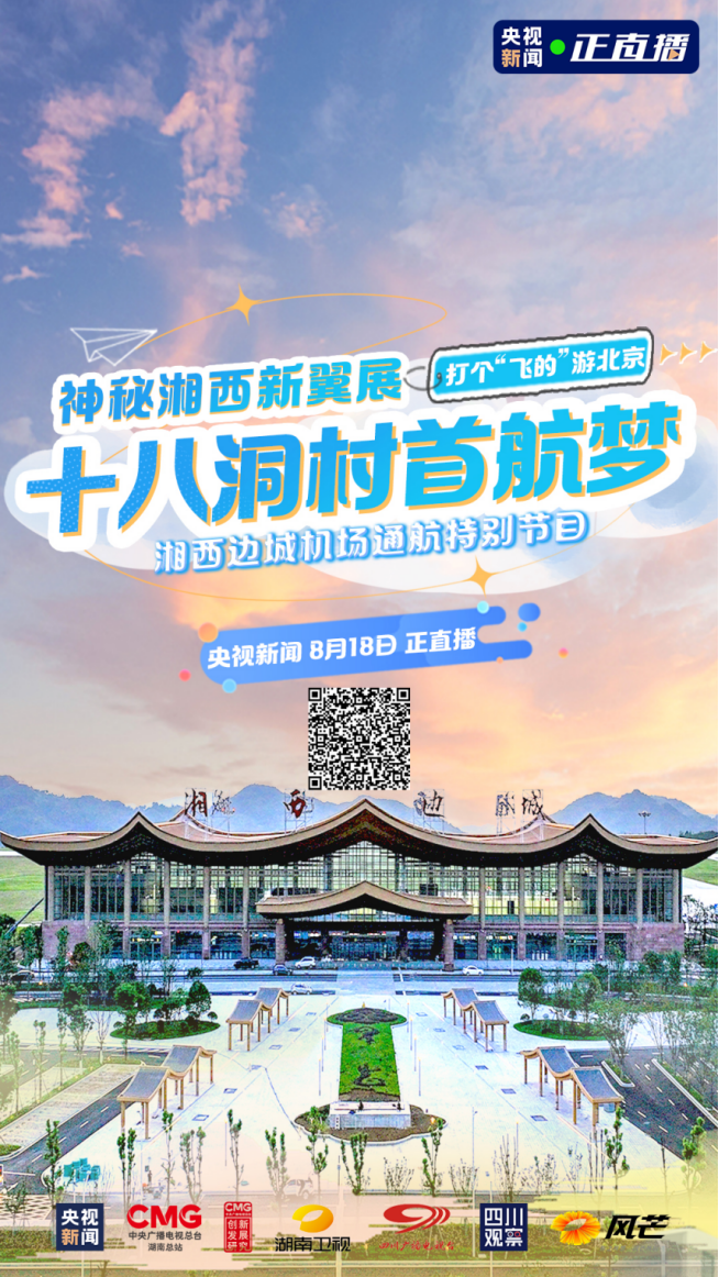 扫描图片二维码,今天上午跟着总台记者一起体验湘西赶秋节和边程机场首飞航班吧!一起见证“边城”的全新打开方式~ #精准扶贫首倡地首趟航班飞首都