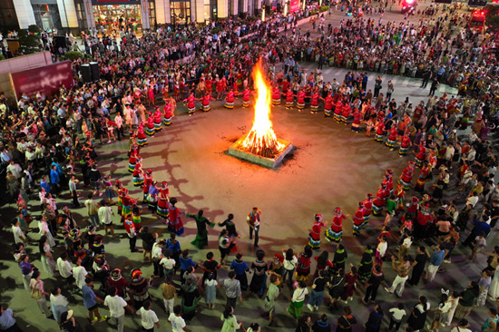 击石取火、火把驱害虫、祭送布谷鸟、抹黑脸、打磨秋……随着彝族火把节的到来,8月的百色市隆林各族自治县热闹非凡。彝族同胞与五湖四海的游客围着篝火载歌载舞,共品长桌宴畅叙友情。