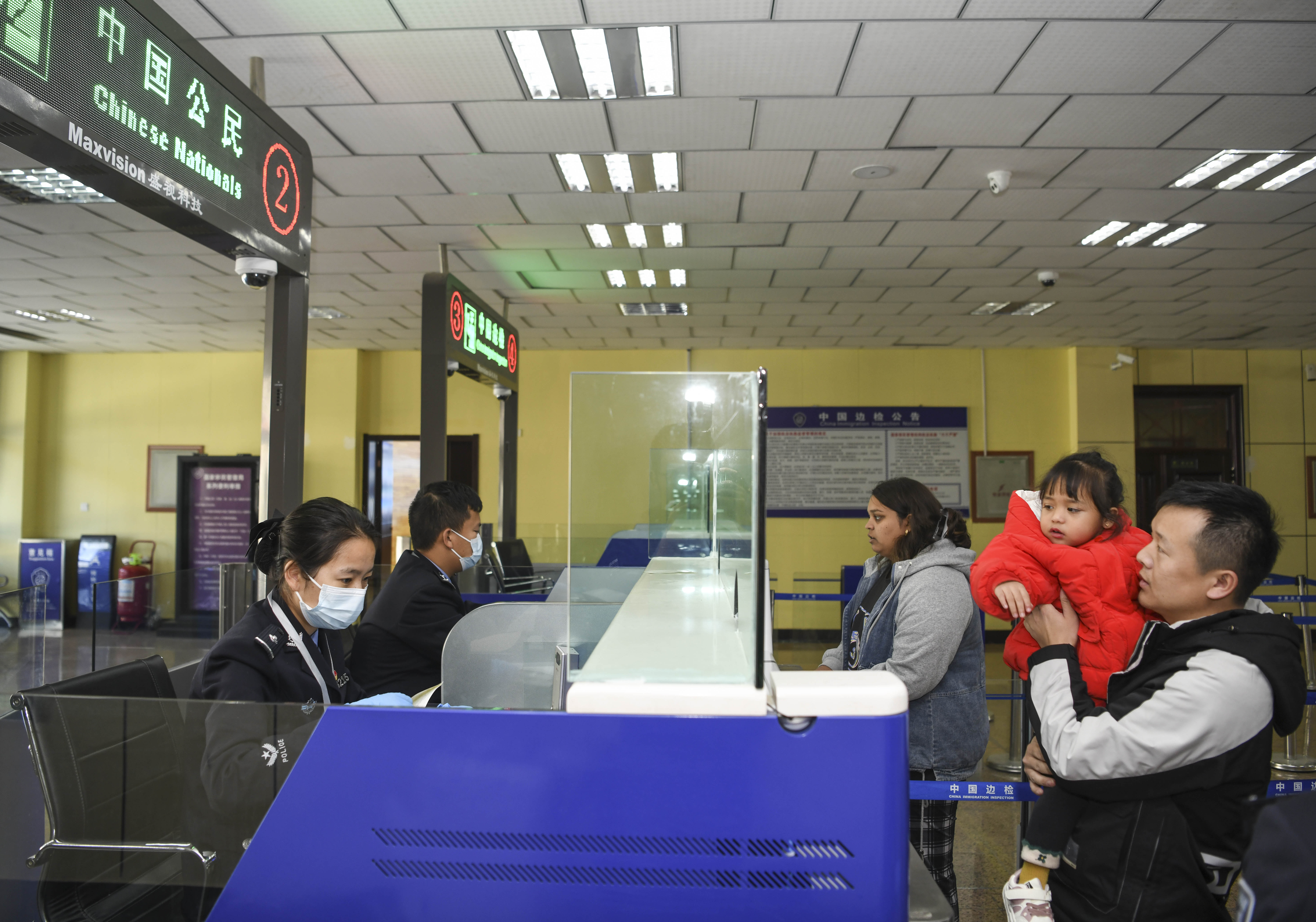 2023年8月29日,准备前往巴基斯坦探亲的跨国夫妇郑银果、索娜带着女儿办理通关手续。
