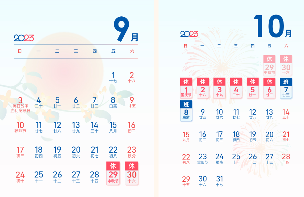 如果你在国庆假期后的7日-13日这7天请假,再连上后面的周末,就能拼出17天长假了,也就是可以从9月29日中秋节一直休到10月15日。