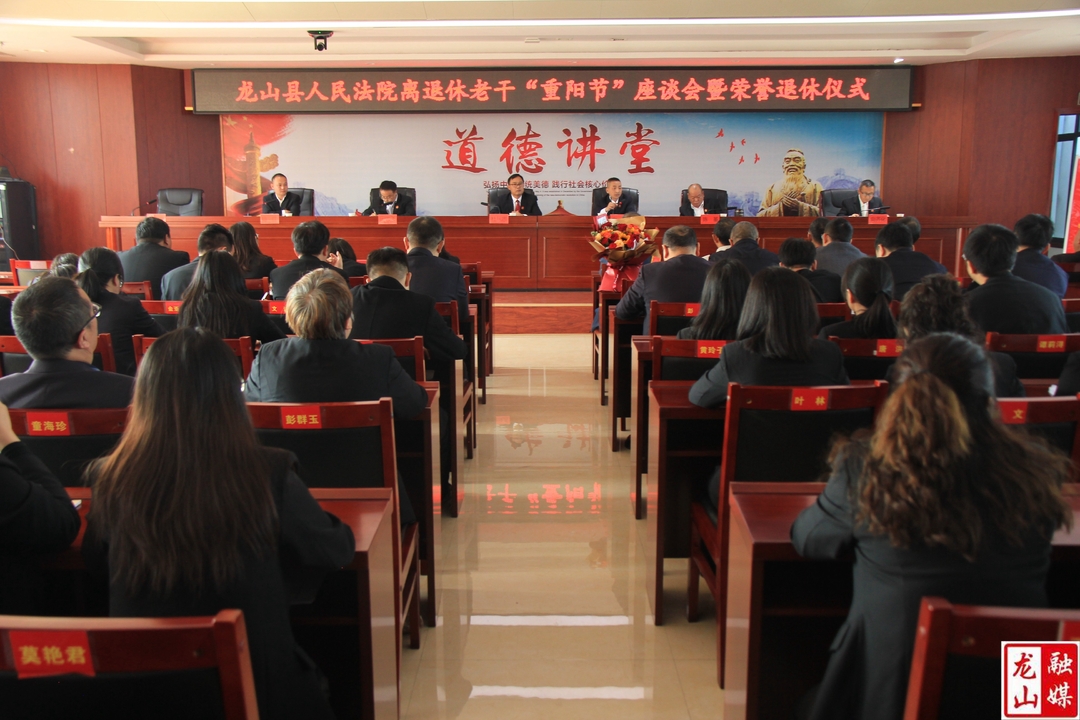 龙山县融媒体中心10月24日讯(通讯员 曹天宇 向明)岁岁重阳,今又重阳。10月23日,县人民法院举行重阳节退休干部座谈会,并为日前退休的唐庆凡、张帆、彭继胜、伍应召四名同志举行荣誉退休仪式。党组书记、院长杜丛志出席仪式并讲话,在家班子成员、离退休老干、全体干警参加会议。
