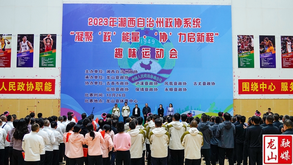 龙山县融媒体中心10月26日讯(记者 黄超 罗佳清 莫代银)10月26日,2023年湘西州政协系统“凝聚‘政’能量,‘协’力启新程”趣味运动会在龙山县体育中心篮球馆隆重开幕。赛程共两天,来自全州政协系统9支代表队的300余名干部职工同场竞技、展示风采。