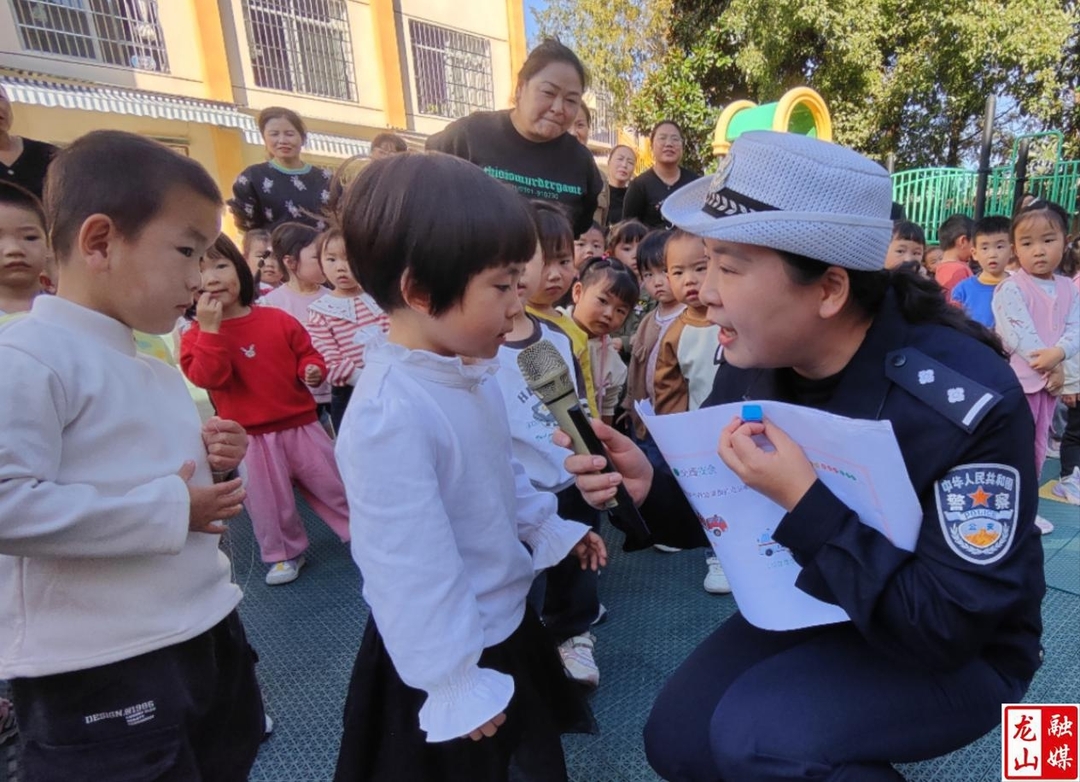 活动中,县交警大队杨警官通过列举发生在周边的典型交通事故,向孩子们讲解了遵守交通规则的重要性,借助看图答题、交通玩具有奖竞猜、交通知识抢答赛等方式教会孩子们认识交通标识、标志、交通信号灯,牢记安全乘车、安全过马路、一盔一带等交通安全常识,引导幼儿把所学习的交通安全知识讲给爸爸妈妈和身边的大人听,以小手牵大手的方式让更多的人遵守交通规章,安全文明出行。