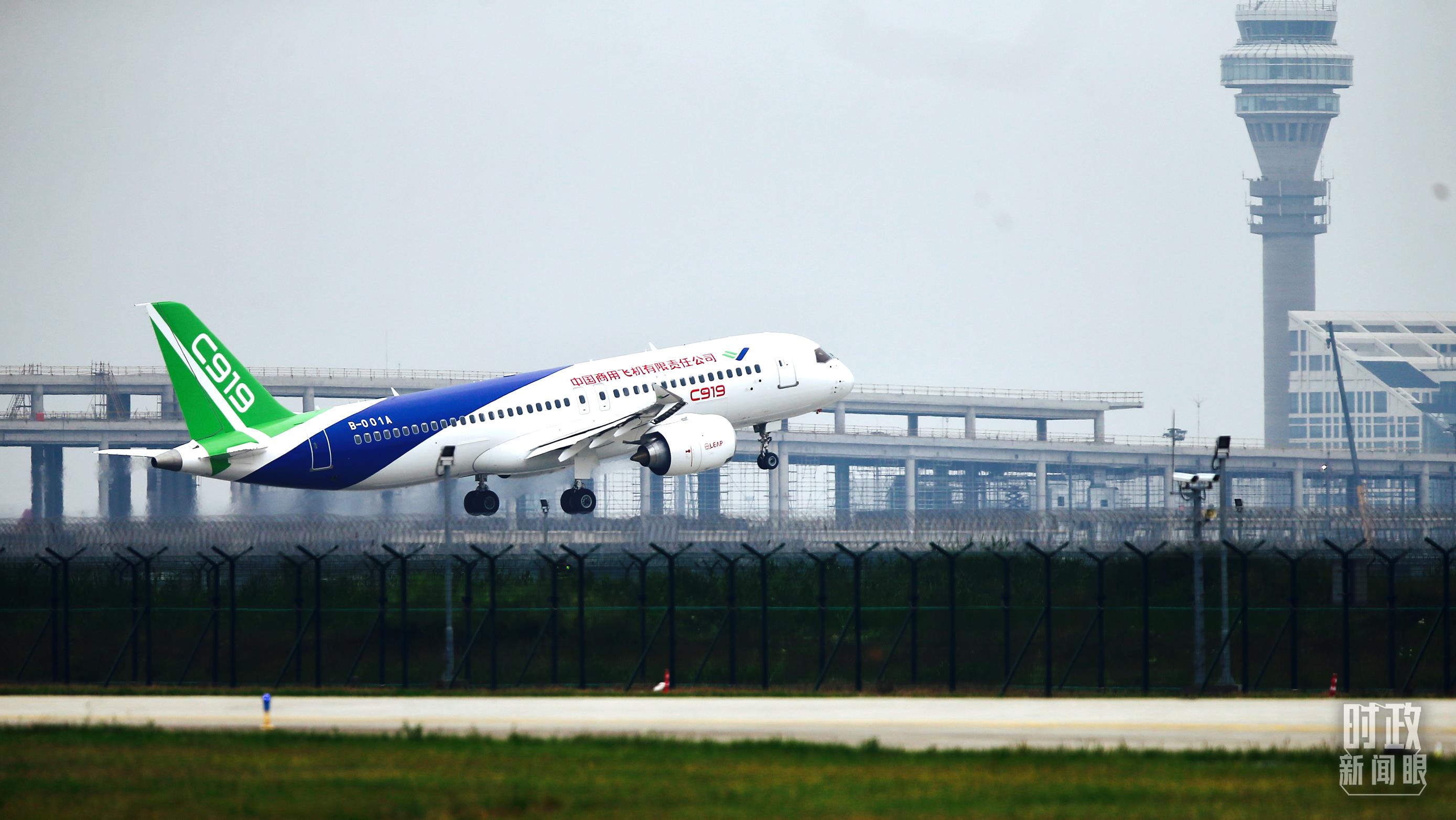 △2017年5月5日,国产大飞机C919成功首飞。(总台国广记者李晋拍摄)