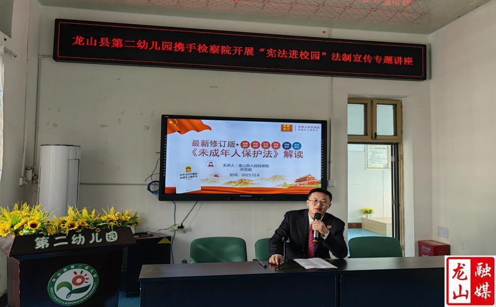 龙山县融媒体中心12月8日讯(通讯员 彭小娟 田寻)12月8日,县人民检察院宣讲员走进第二幼儿园,开展了最新修订版《未成年人保护法》解读专题讲座,全园40余名教职工参加。
